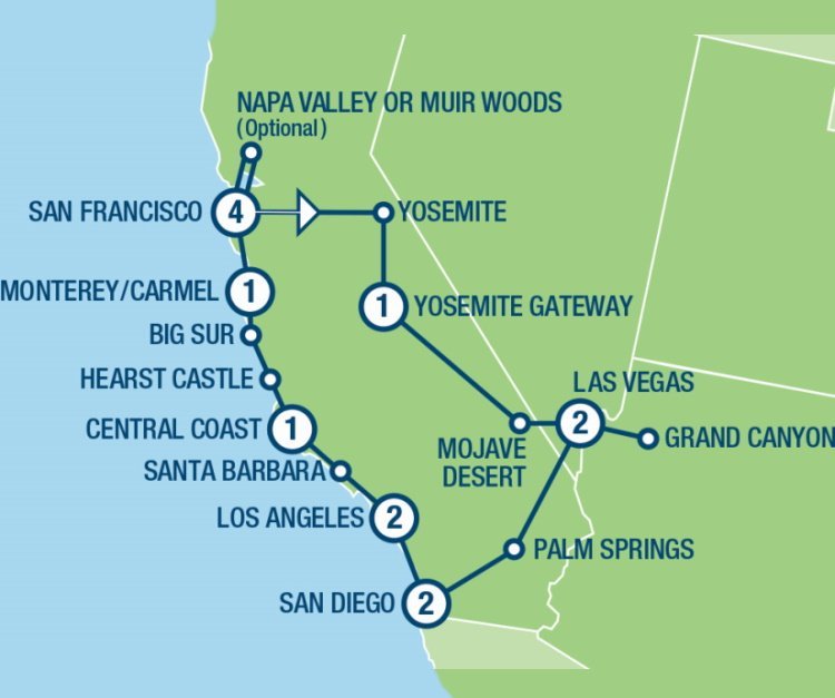 Tijdens deze groepsreis door West USA in een kleine groep van maximaal 20 personen ervaart u het leven in Californië en Nevada. U verblijft meerdere nachten in de meest bekende steden zoals San Francisco, Las Vegas, San Diego en Los Angeles. U leert deze steden per lokale gids ontdekken die u alle bekende maar ook minder bekende plekjes laat zien. Maar ook de meest bekende nationale parken zoals Yosemite en de Grand Canyon staan op het programma. U reis in een rustig tempo en heeft voldoende tijd om ook op eigen gelegenheid deze steden in het zuidwesten van Amerika te ontdekken.