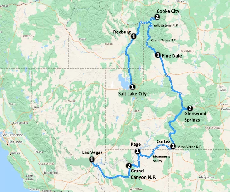 From Yellowstone to Grand Canyon (15 dagen)