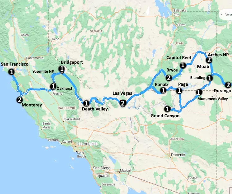 Ervaar de pracht van het Westen van Amerika met onze betoverende 22-daagse reis “Western Wonderland”. Begin in het levendige Las Vegas en verken de iconische nationale parken zoals Bryce Canyon, Yosemite en de Grand Canyon. Reis door schilderachtige landschappen, van de majestueuze Sequoia-bomen tot de mystieke kloven van Monument Valley. Ontdek charmante stadjes zoals Durango en Kanab, en geniet van een adembenemende rit over de 17-Mile Drive langs de Californische kust. Van de ruige schoonheid van Death Valley tot de serene waters van Lake Powell, deze kleinschalige groepsreis biedt een onvergetelijke ervaring voor natuurliefhebbers en avonturiers.