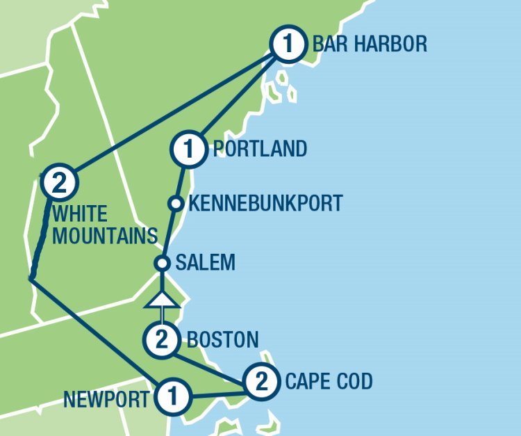 Een groepsreis waarbij u in een rustig tempo een prachtig natuurlijk gebied van het noordoosten van Amerika ontdekt: New England. We rijden door de schitterende natuur van de White Mountains en ontdekken de interessante geschiedenis en rijke cultuur. Deze reis wordt alleen uitgevoerd in de maanden september en oktober want dan is het kleurenschouwspel van de bladeren van bomen en struiken op haar mooist. We bezoek onderweg leuke, kleine en oude stadjes en dorpjes. Kortom, een afwisseling van natuur en historie tijdens een compacte groepsreis door het noordoosten van Amerika.